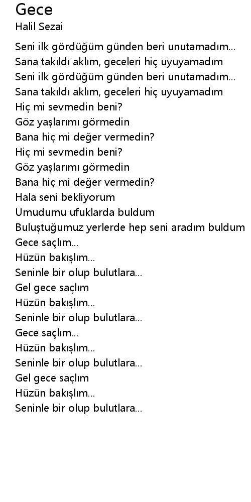 | Sana takıldı aklım, geceleri hiç uyuyamadım | |