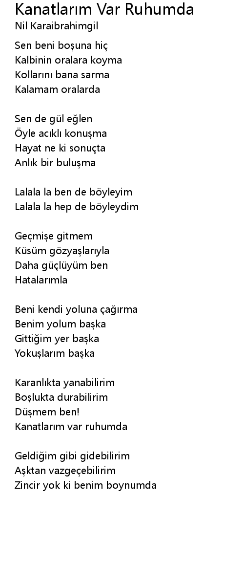 | Song | Kanatlarım Var Ruhumda |