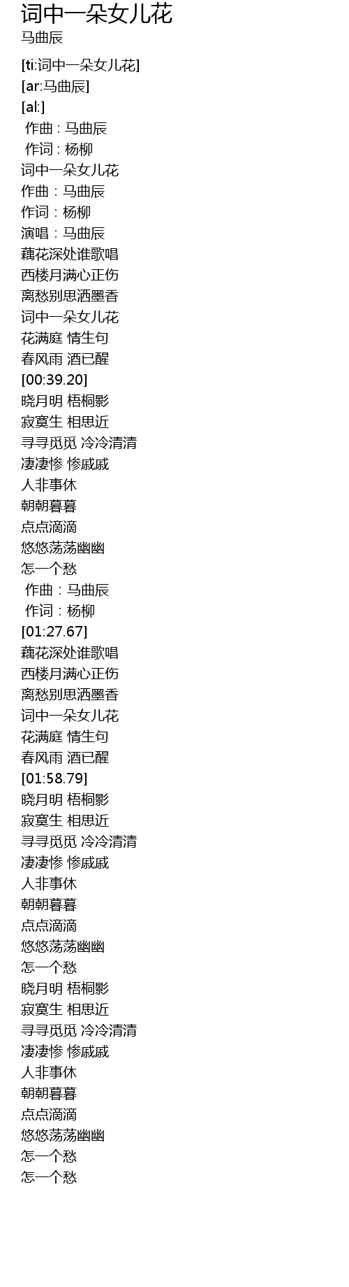 | [00:00.01] | cí zhōng yī duǒ nǚ ér huā |