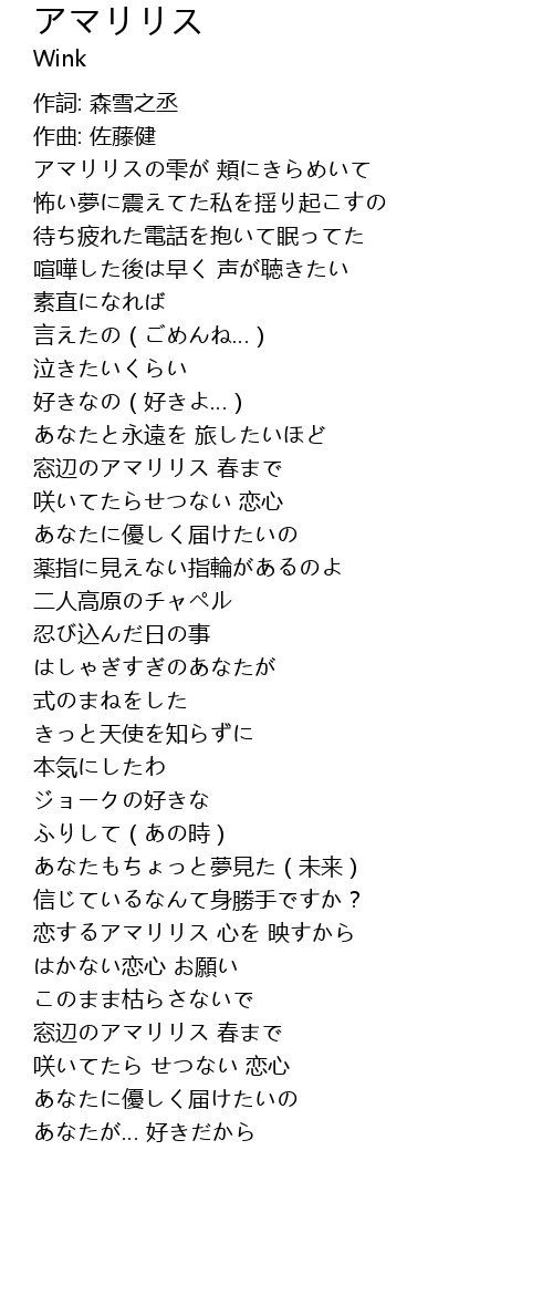 | [00:21.300] | アマリリスの雫が 頬にきらめいて |