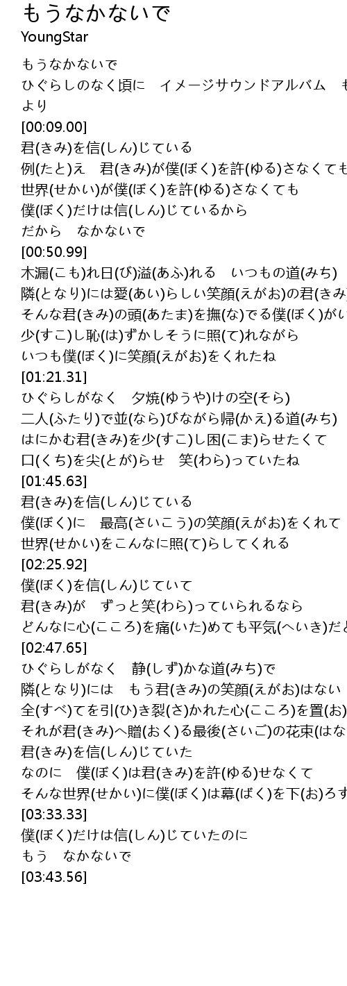 | [00:01.00] | もうなかないで |