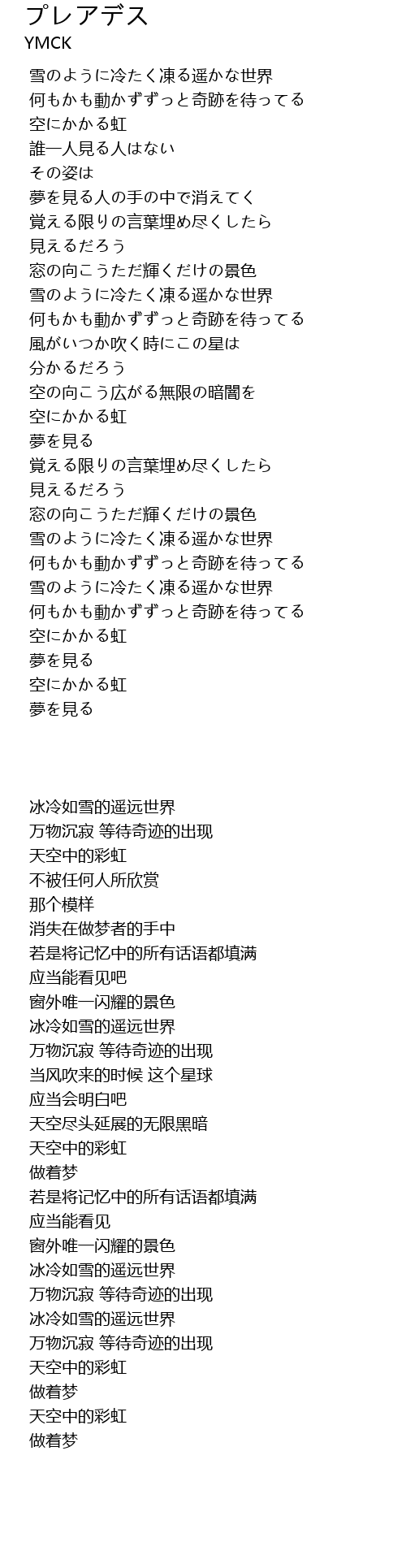 | [01:00.571] | 雪のように冷たく凍る遥かな世界 |