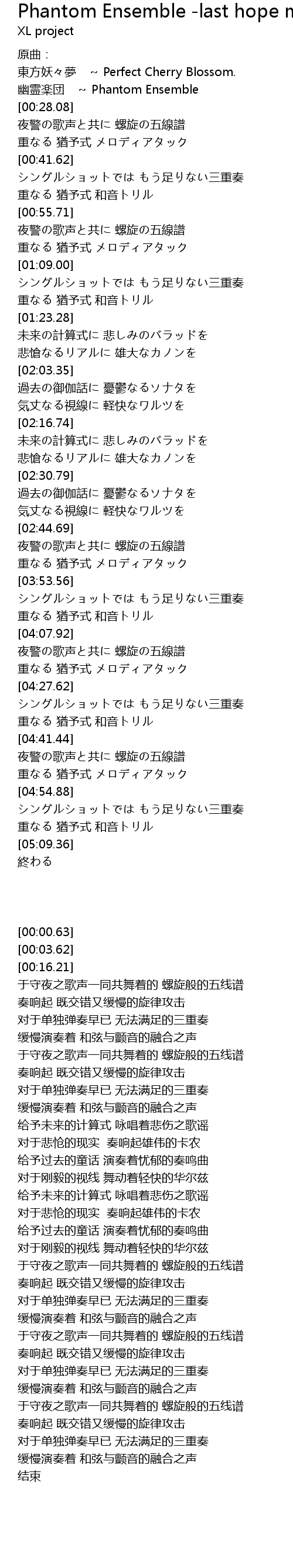 | [00:16.21] | 幽霊楽団 ~ Phantom Ensemble |