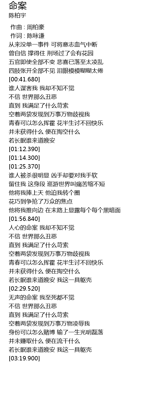 | [01:57.200] | 人心的命案 我却不知不觉 |