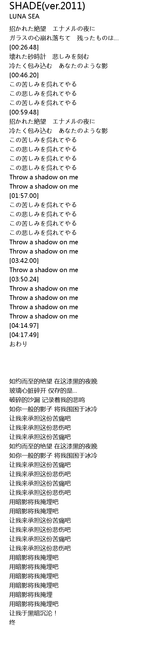 冷たく包み込む あなたのような影 |