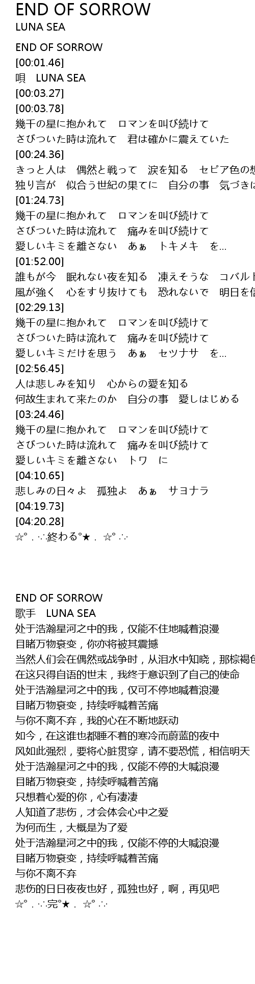 | [00:04.46] | 幾千の星に抱かれて ロマンを叫び続けて |