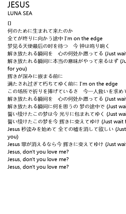 | Jesus 秒读みを始めて 全ての嘘を消して欲しい (Just wait for you) | |