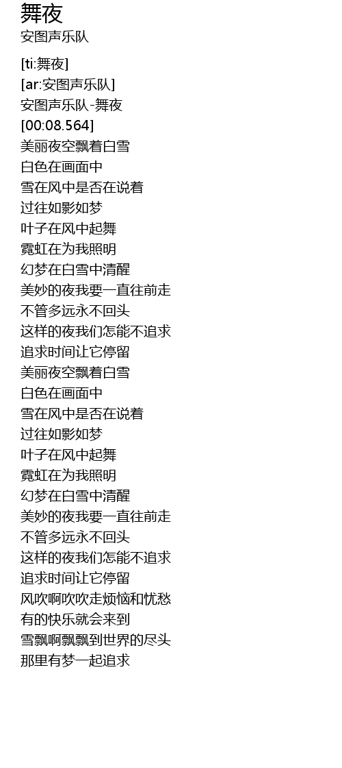 | [02:07.619] | 美丽夜空飘着白雪 |