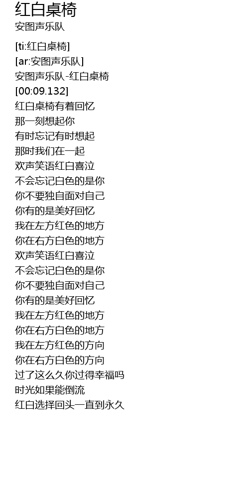 | [00:02.679] | 安图声乐队-红白桌椅 |