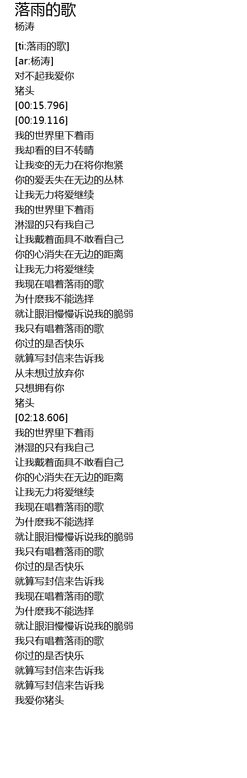 | [03:38.415] | 我只有唱着落雨的歌 |