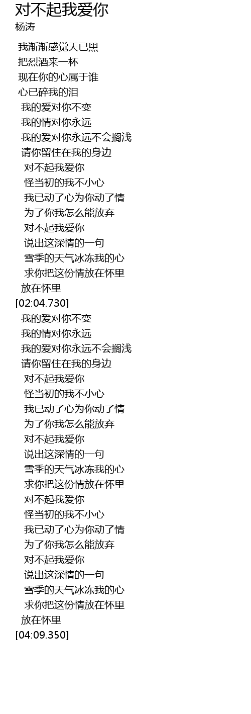 | [03:47.690] | duì bù qǐ wǒ ài nǐ |