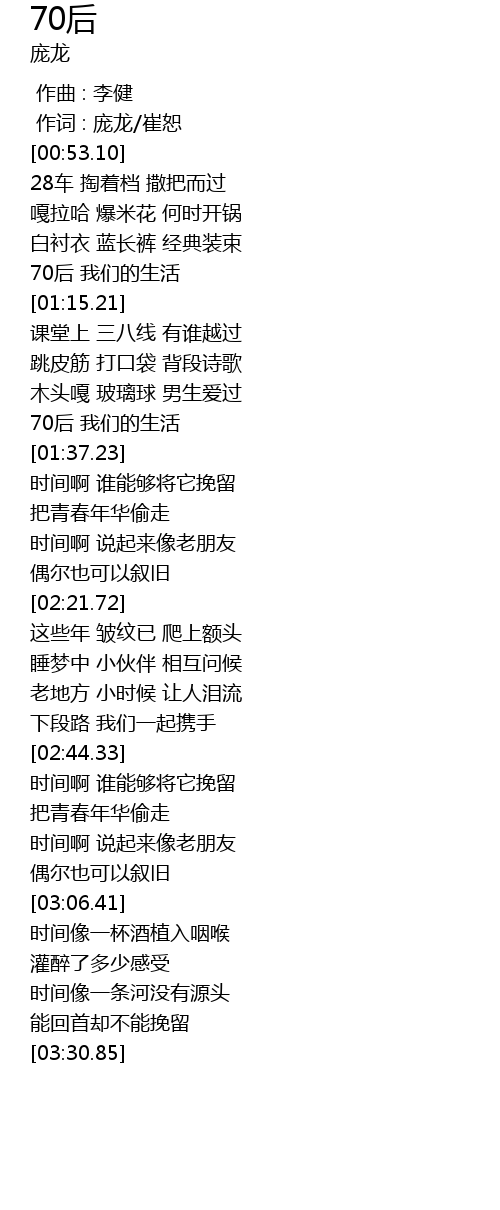 | [01:10.57] | 70后 我们的生活 |