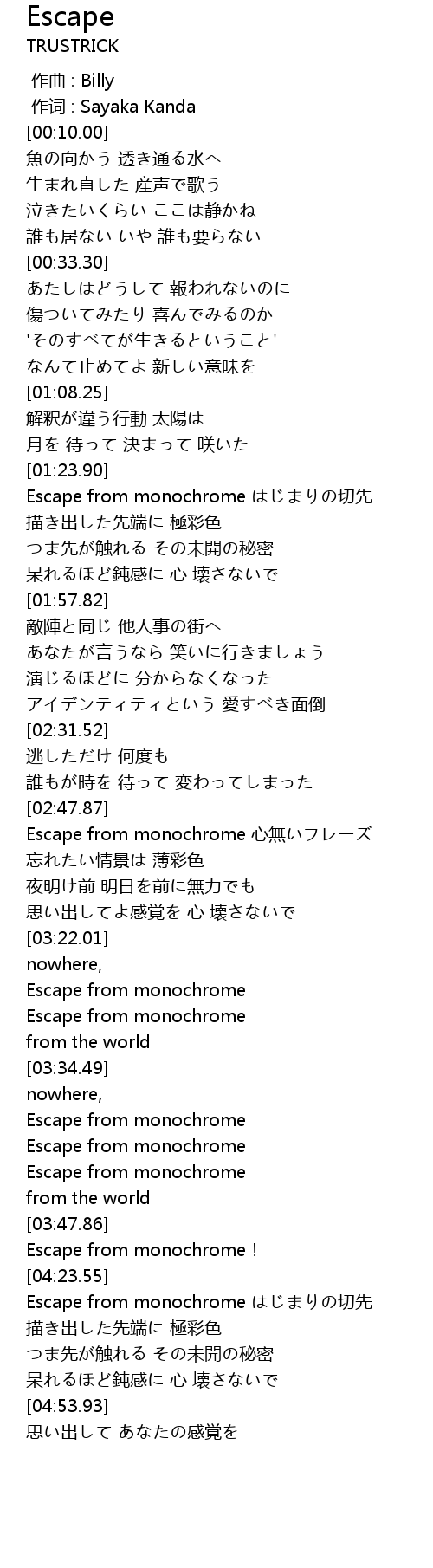 | [02:51.97] | Escape from monochrome 心無いフレーズ |