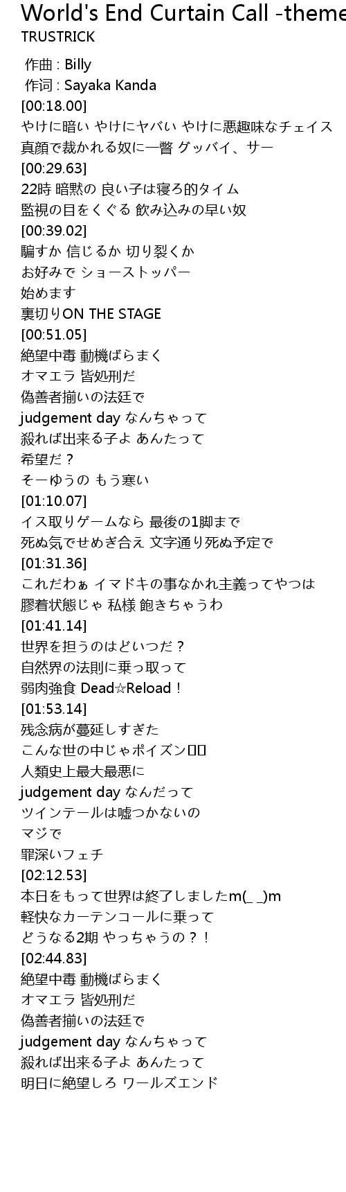 | [03:02.60] | 明日に絶望しろ ワールズエンド |