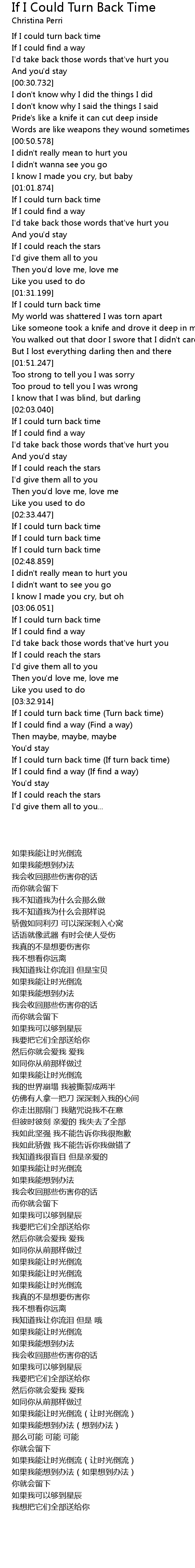 If I could turn back time (If turn back time) |