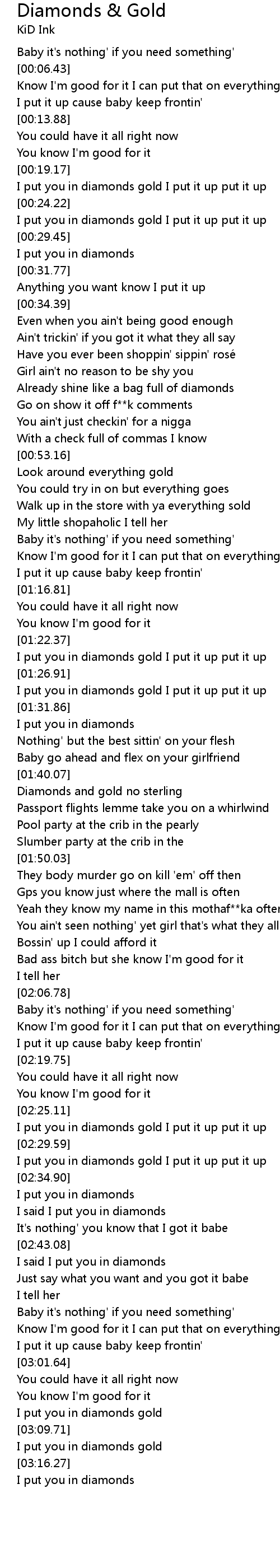| [00:19.69] | I put you in diamonds gold I put it up put it up |