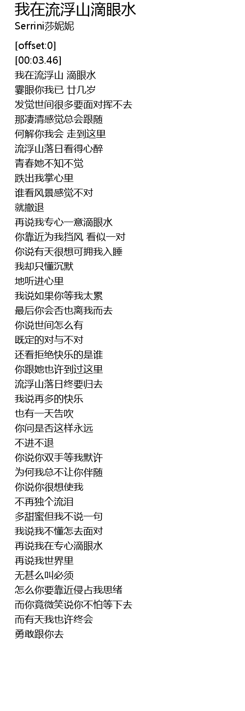 | [00:19.40] | 我在流浮山 滴眼水 |