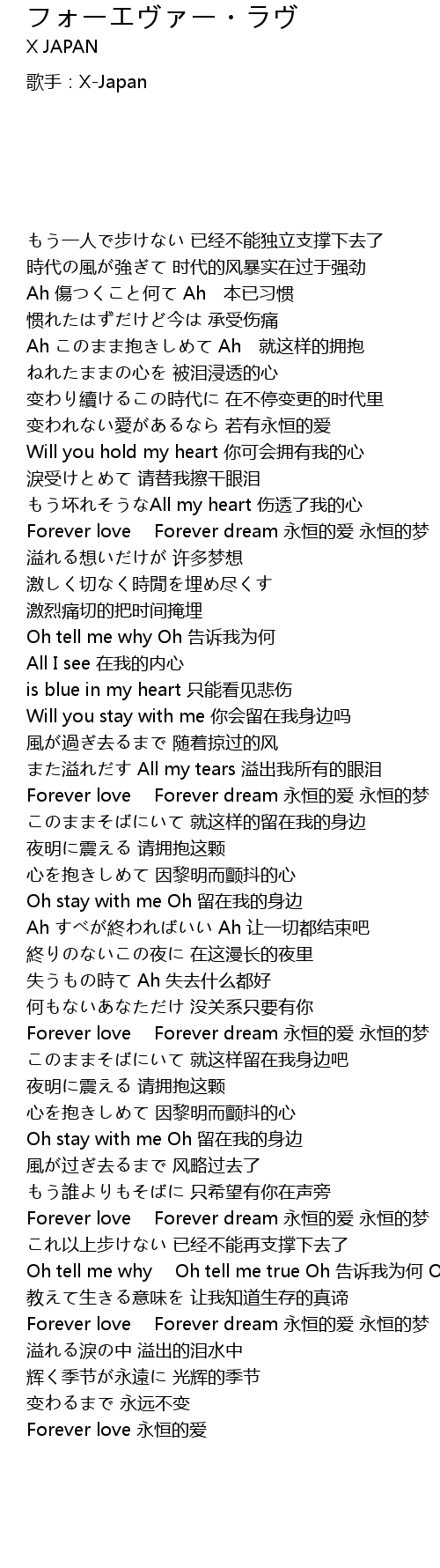 | [06:00.24] | Forever love Forever dream yǒng héng de ài yǒng héng de mèng |