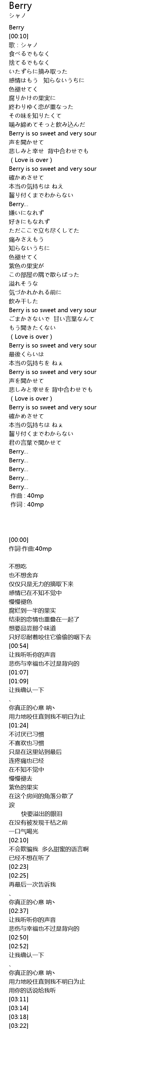 | [00:00.00] | 作词 : 40mp |