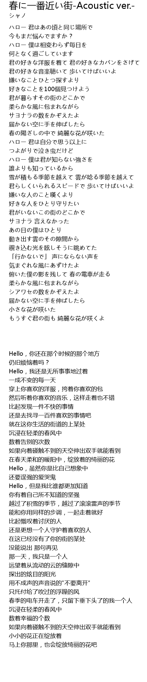 | [00:18.70] | ハロー 君はあの頃と同じ場所で |