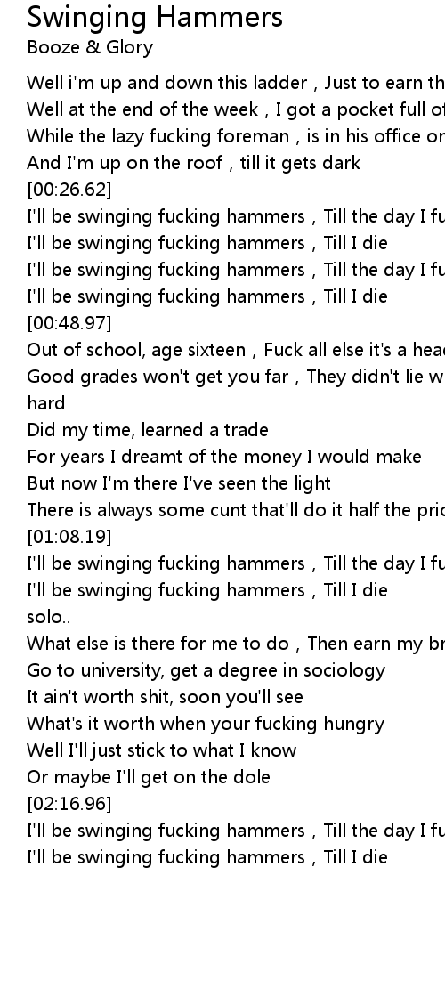 | [00:37.21] | I' ll be swinging fucking hammers, Till I die |