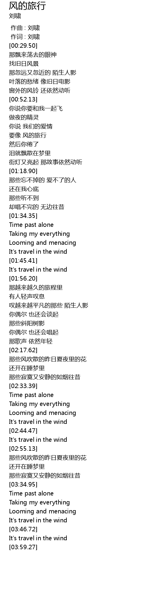 | [02:55.40] | It' s travel in the wind |