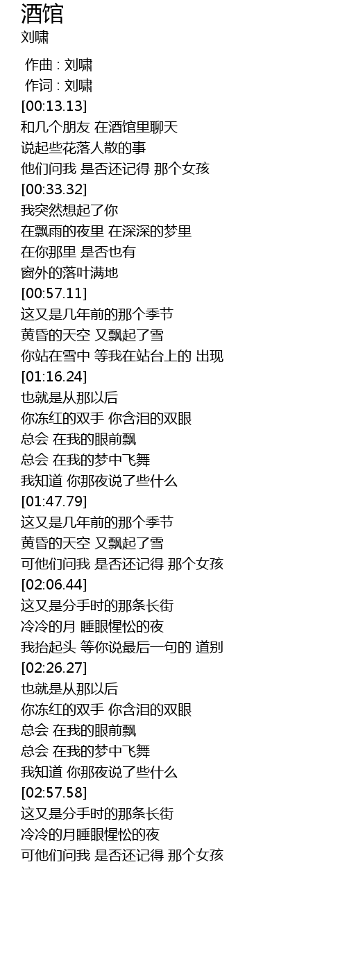 | [00:17.28] | 和几个朋友 在酒馆里聊天 |