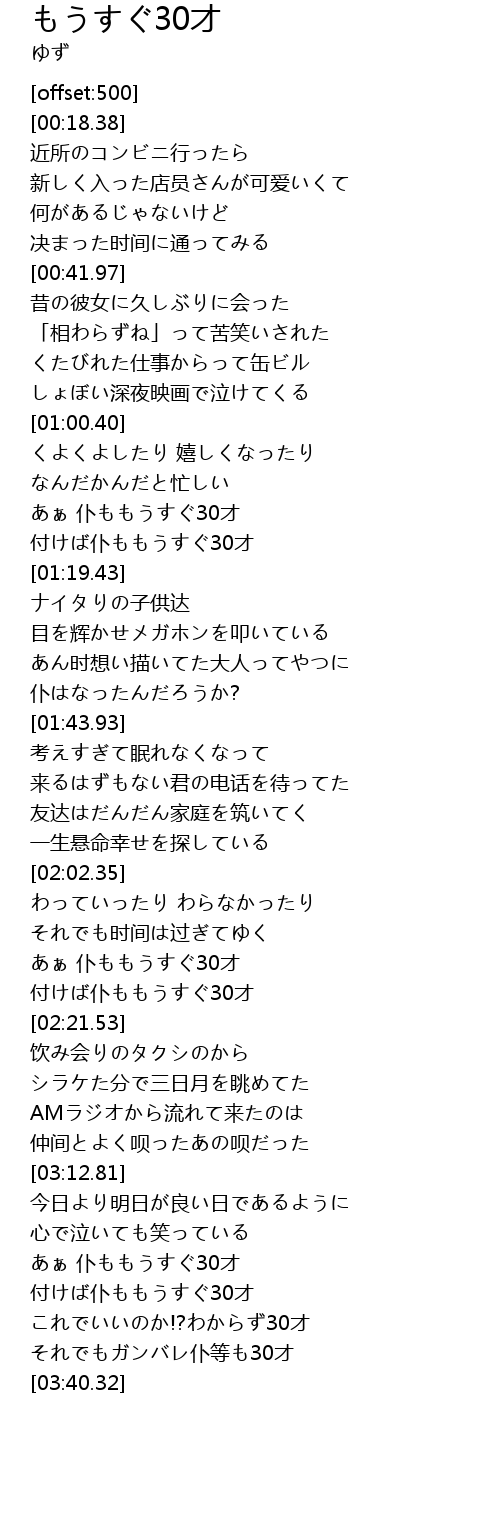 | [03:23.04] | あぁ 仆ももうすぐ30才 |