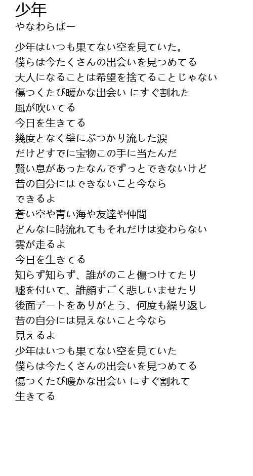| [00:13.54] | 少年はいつも果てない空を見ていた。 |