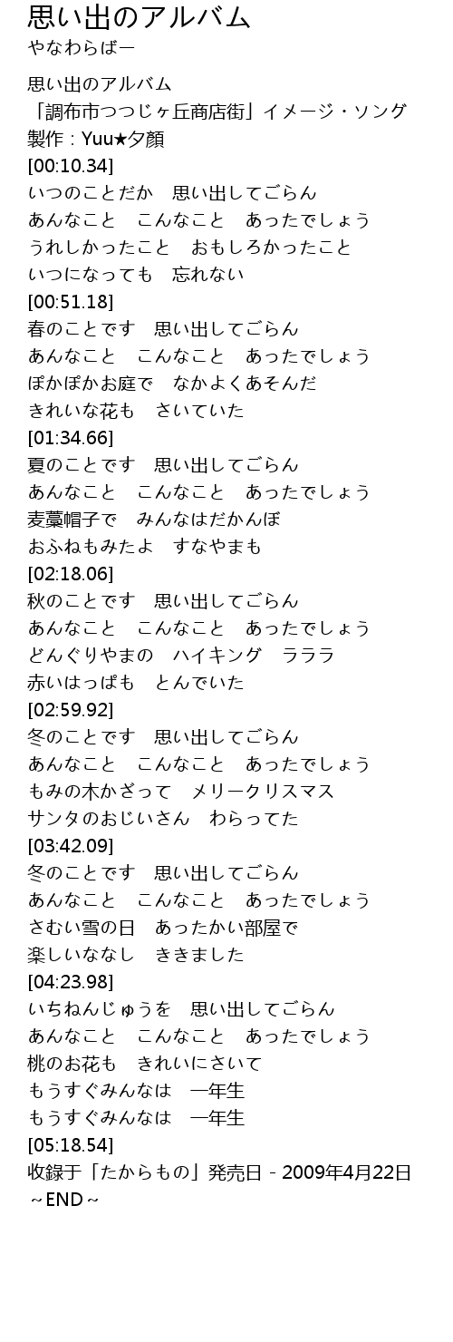| [00:00.00] | 思い出のアルバム |
