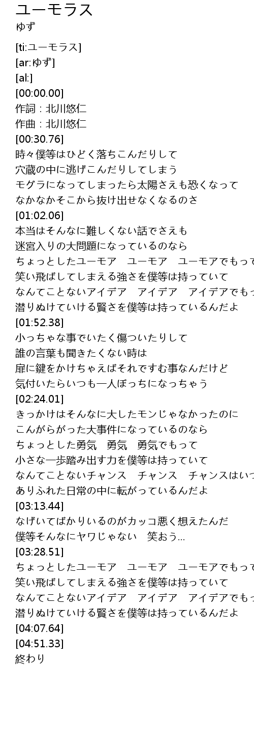 | [01:18.50] | ちょっとしたユーモア ユーモア ユーモアでもって |