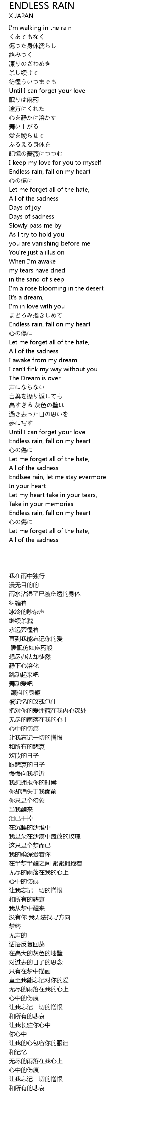 | [05:56.43] | Endless rain, fall on my heart |