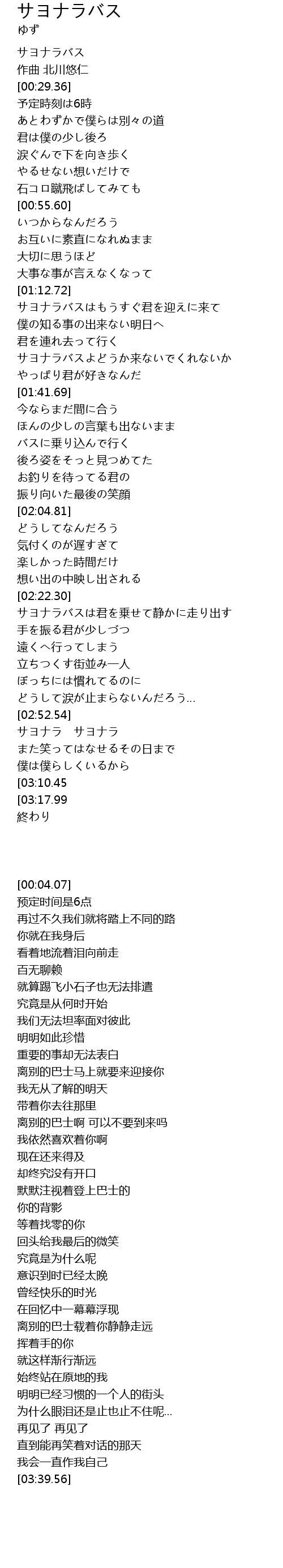 | [00:04.07] | サヨナラバス |