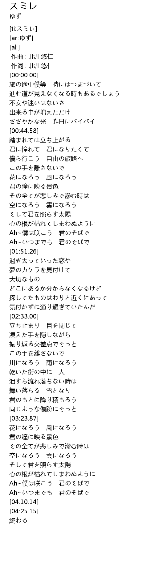| [04:02.02] | Ah~いつまでも 君のそばで |