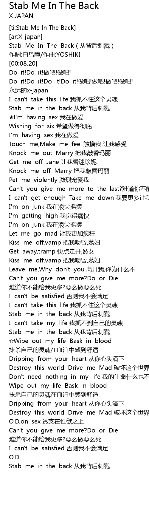 | [00:04.07] | Stab Me In The Back cong bei hou ci lu |