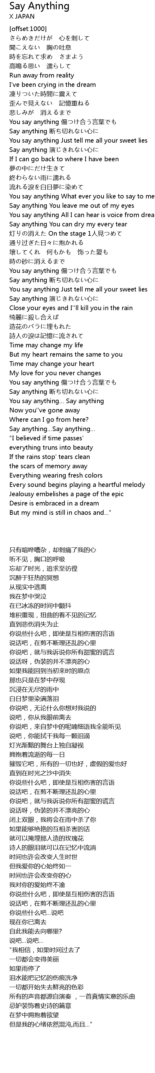 | [06:19.74] | You say anything 傷つけ合う言葉でも |