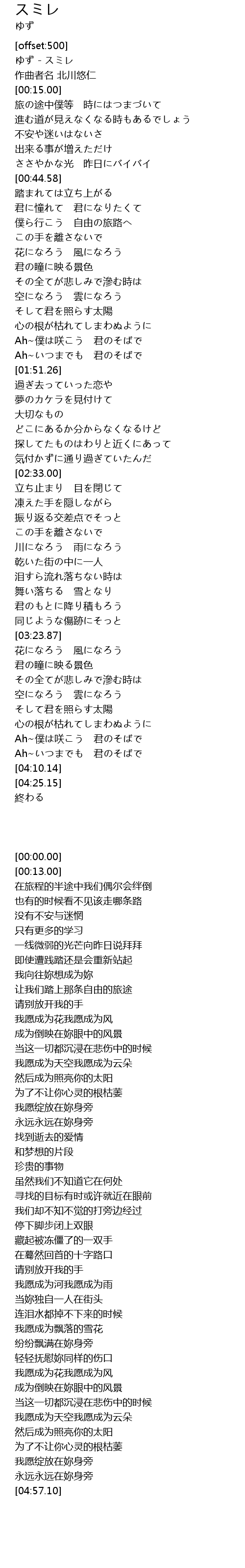 | [00:00.00] | ゆず - スミレ |