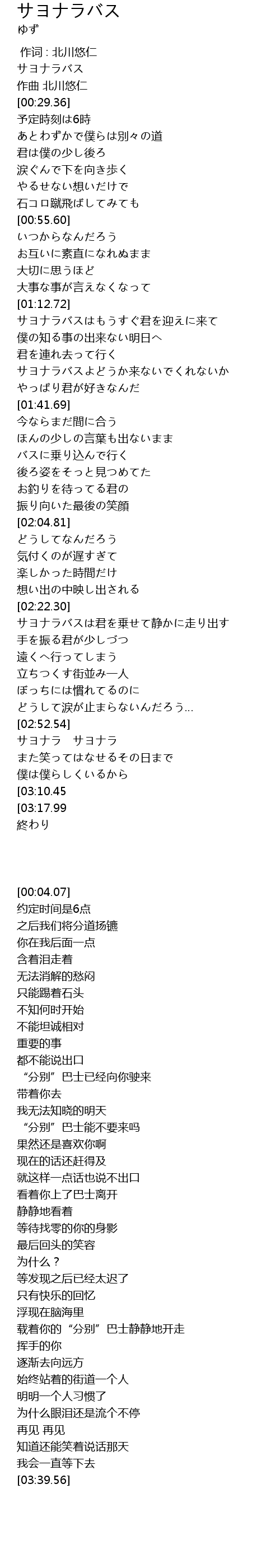 | [00:04.07] | サヨナラバス |