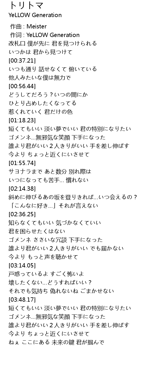 | [00:01.00] | 作词 : YeLLOW Generation |