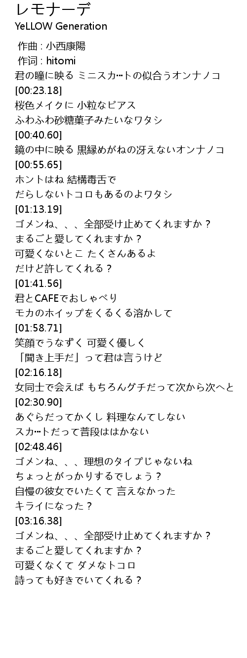| [03:34.14] | まるごと愛してくれますか? |