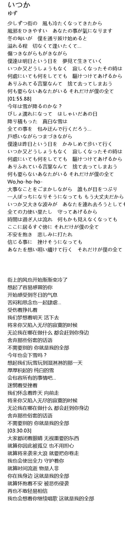 | [03:21.07] | 何も要らないあなたがいる それだけが僕の全て |