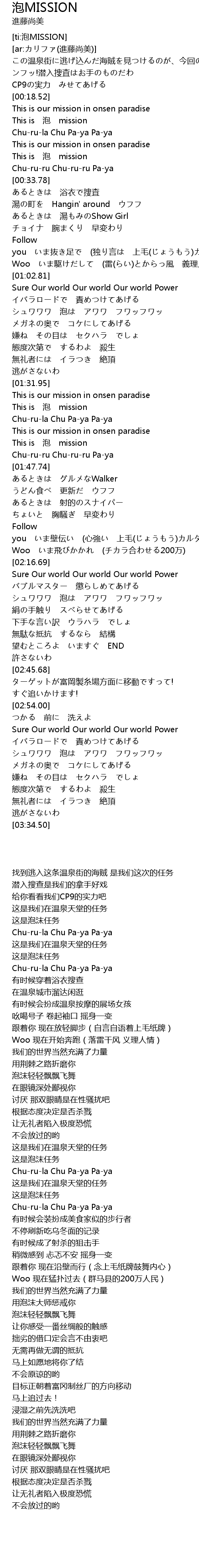 | [00:37.51] | 湯の町を Hangin' around ウフフ |