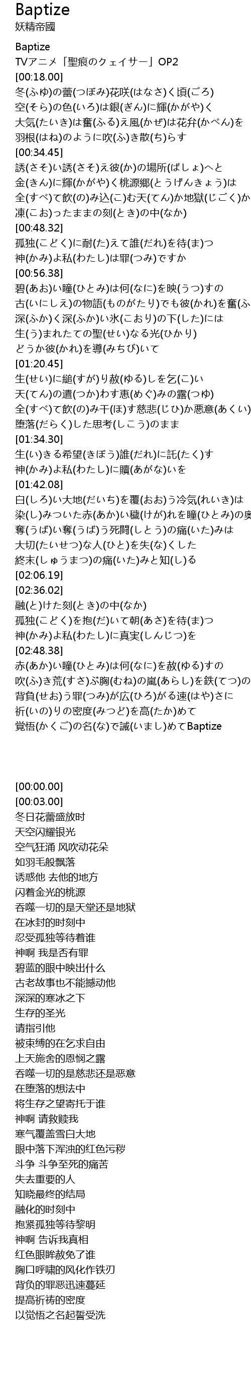 | [03:06.51] | 覚悟(かくご)の名(な)で誡(いまし)めてBaptize |