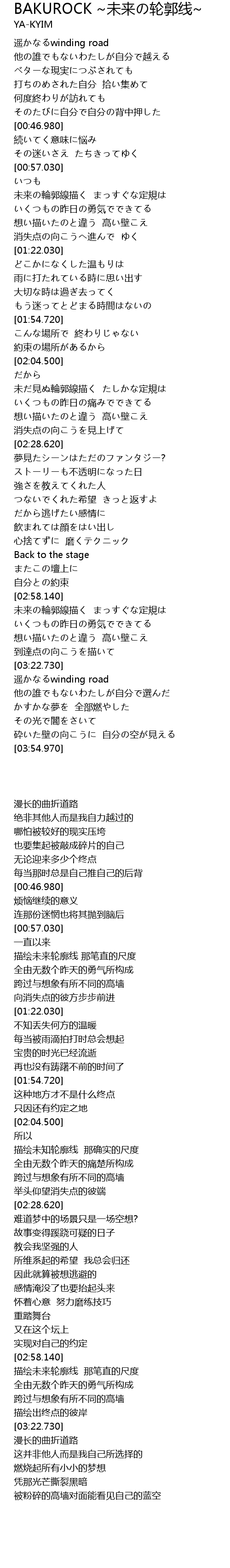 | [01:14.470] | 消失点の向こうへ進んで ゆく |