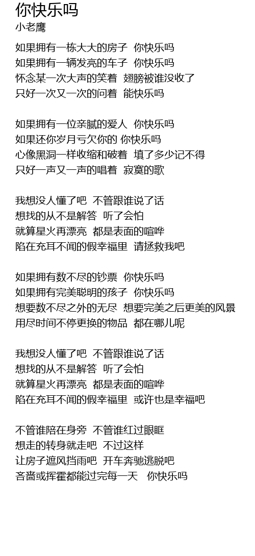 | zhǐ hǎo yī cì yòu yī cì de wèn zhe néng kuài lè ma | |