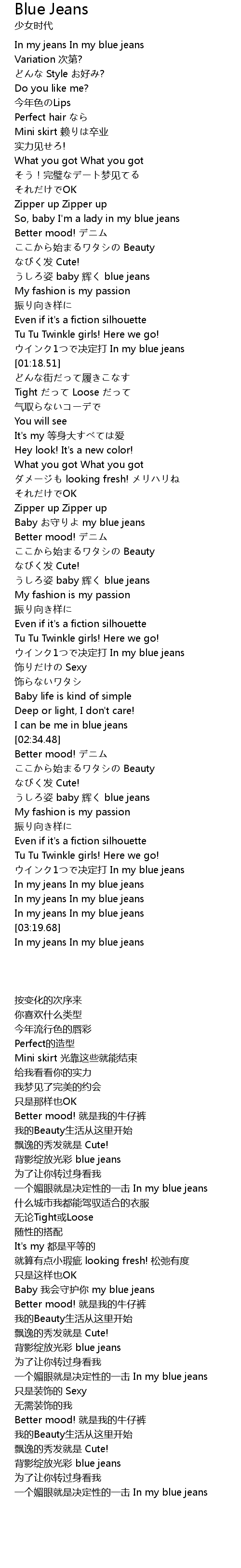 | [02:13.26] | ウインク1つで决定打 In my blue jeans |