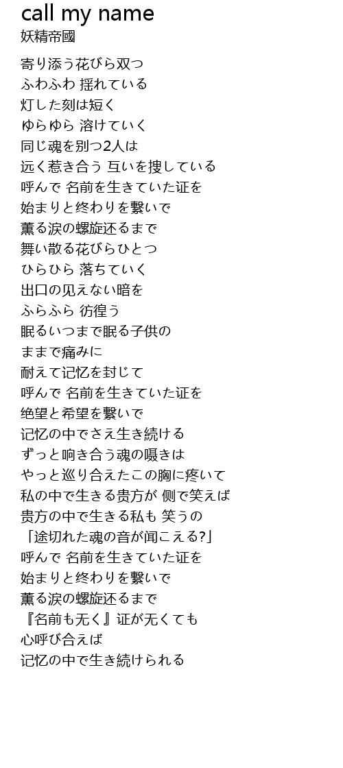 | [03:15.610] | 呼んで 名前を生きていた证を |
