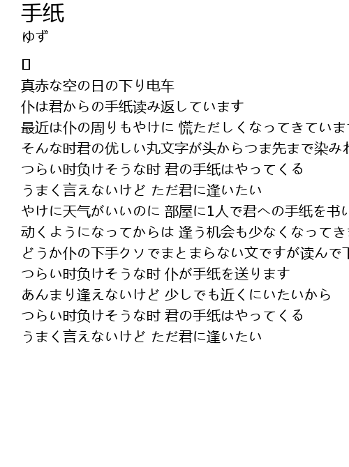 | 真赤な空の日の下り电车 仆は君からの手纸读み返しています | |
