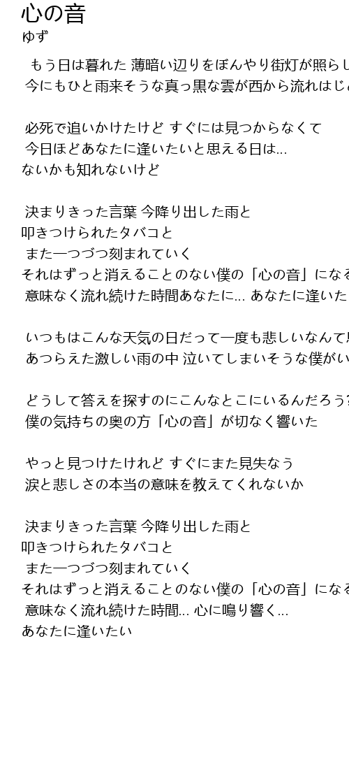 | 僕の気持ちの奥の方「心の音」が切なく響いた | |