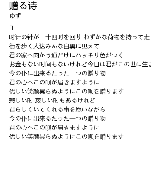 | 优しい笑颜昙らぬようにこの呗を赠ります | |